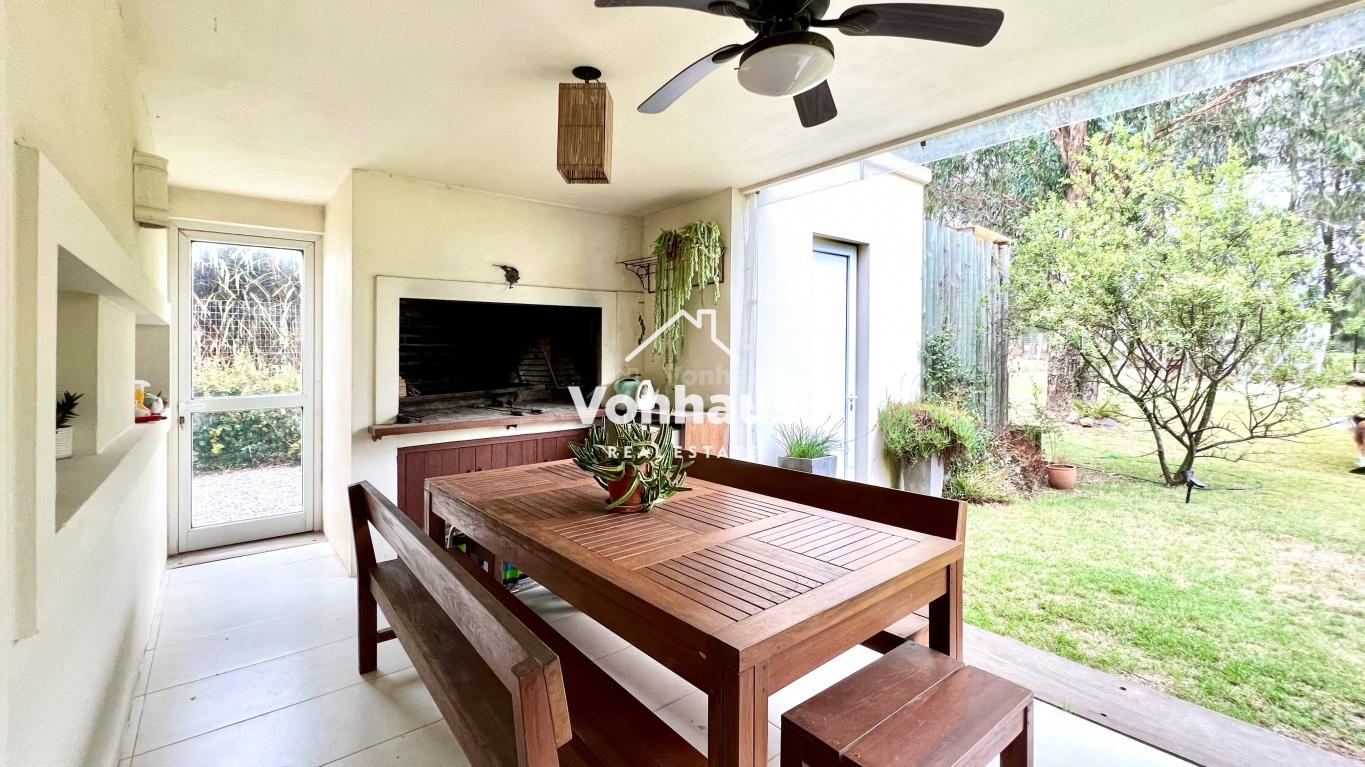 Barbacoa integrada a la casa con salida desde la cocina, baño y cerramiento con toldo y pvc removible.