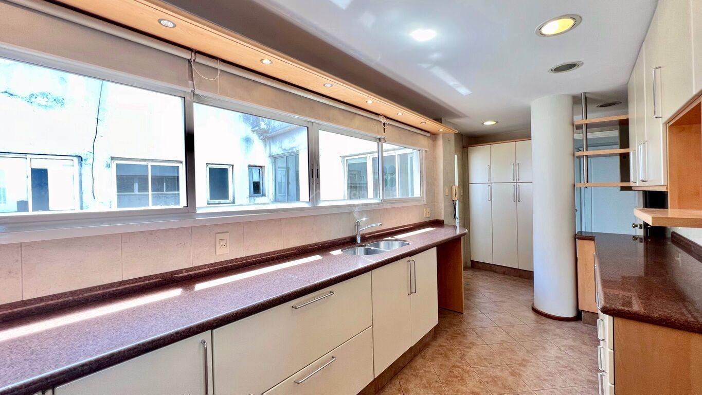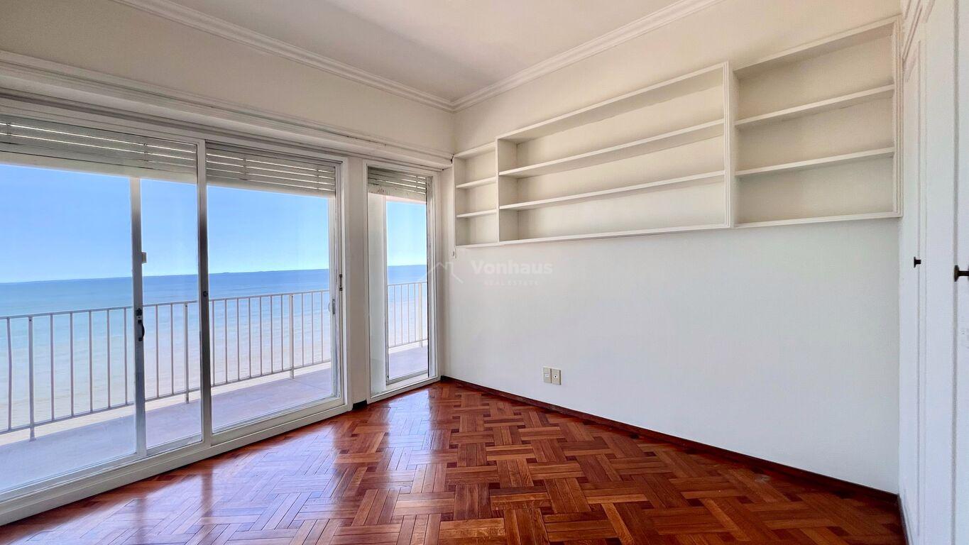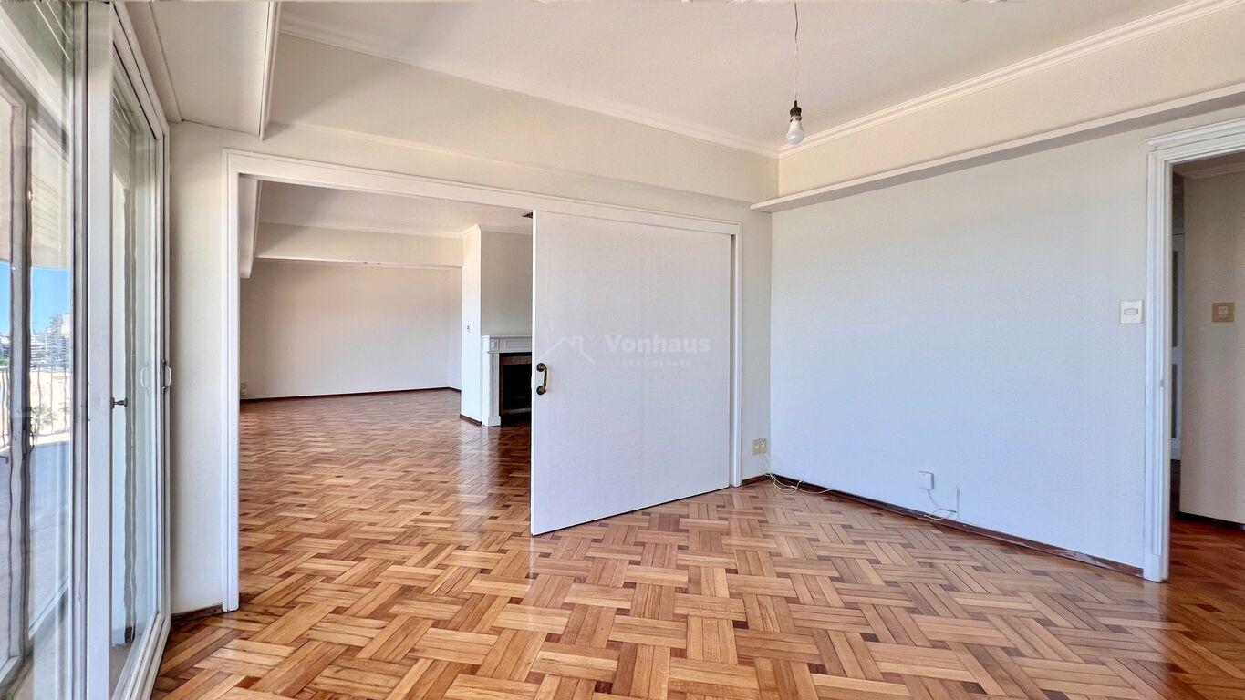 La planta se desarolla con un amplio recibidor y toilette. Estar, living y comedor, de gran tamaño, Todos con vista a la rambla.