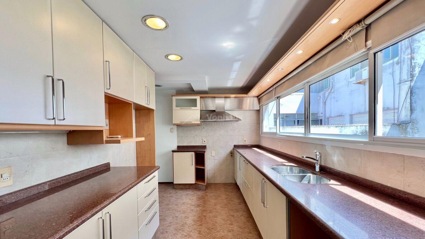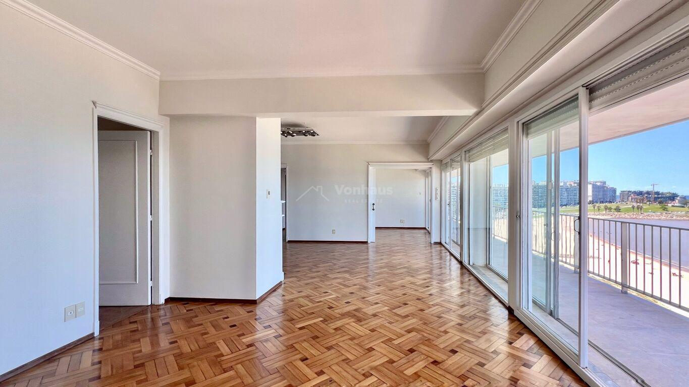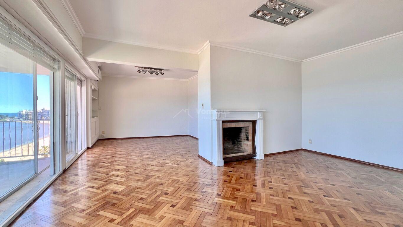 La planta se desarolla con un amplio recibidor y toilette. Estar, living y comedor, de gran tamaño, Todos con vista a la rambla.