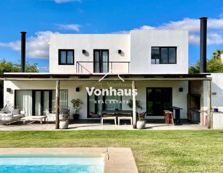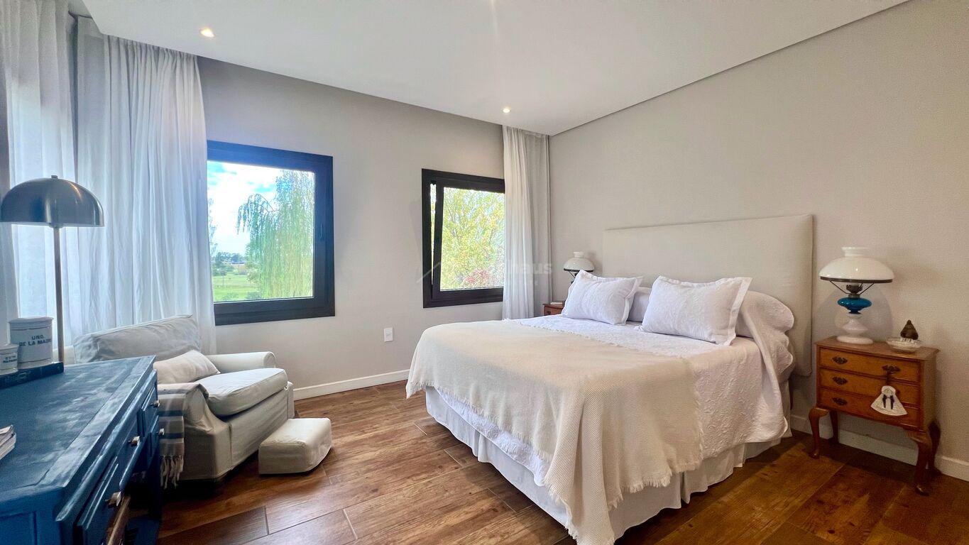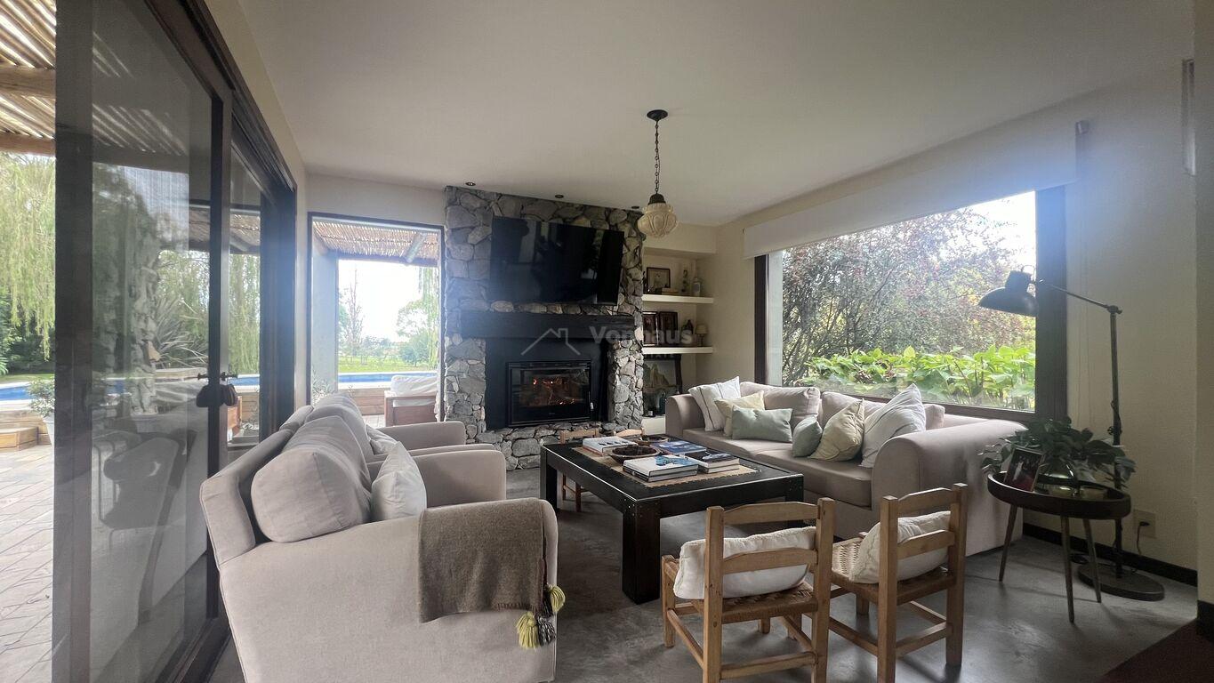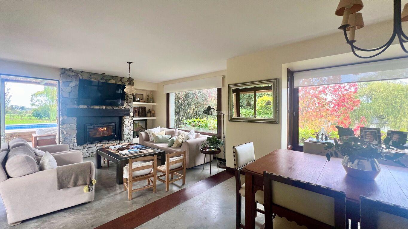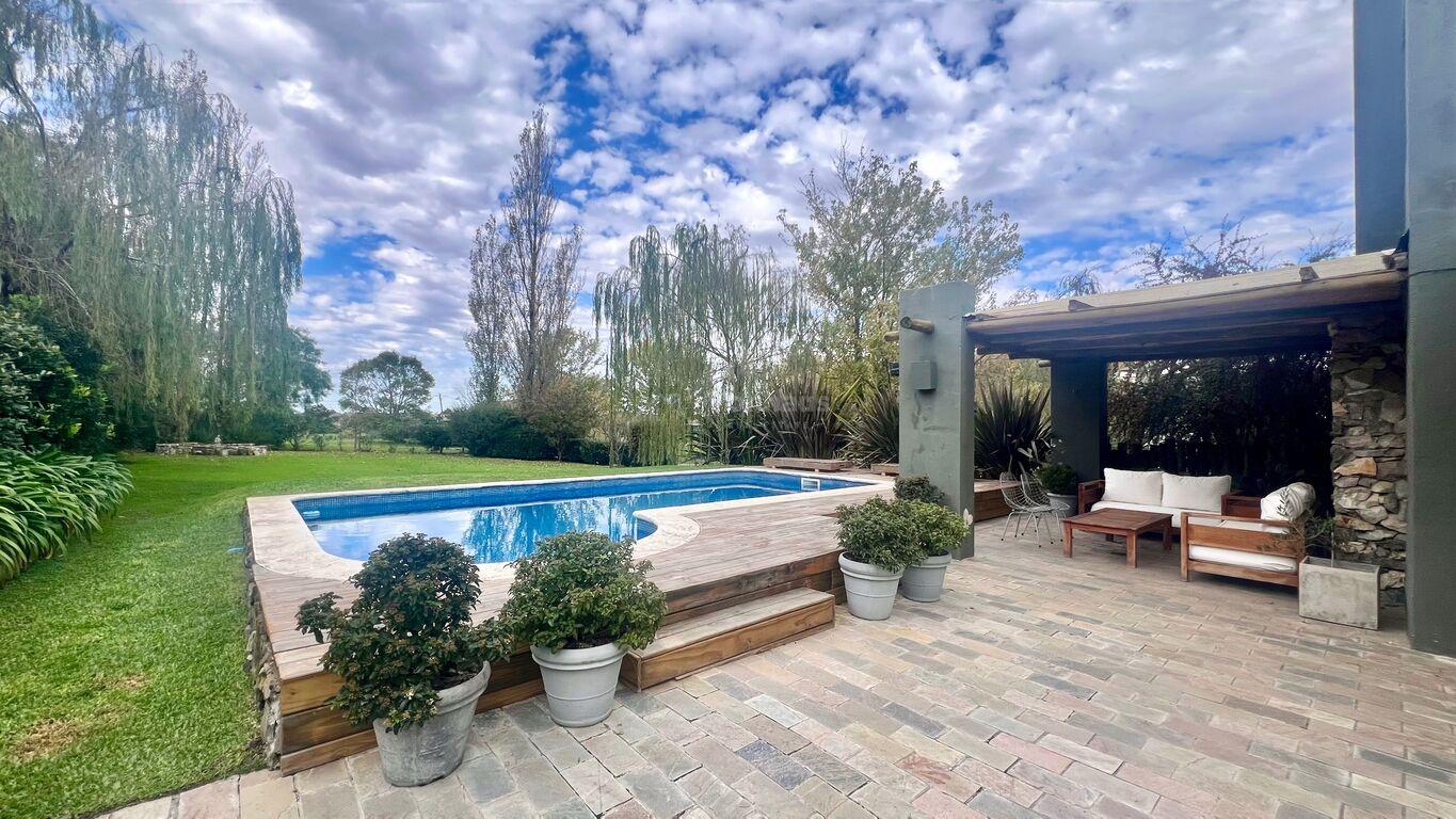 Esta encantadora residencia, ubicada en Lomas de la Tahona, distribuida en dos niveles en un terreno esquina con orientación Este, ofrece un diseño único y acogedor.De construcción tradicional. En la planta baja, se encuentra una espaciosa sala de estar con una eficiente estufa, un acogedor living comedor, tambien con estufa a leña, y cocina definida con entrada independiente y desayunador. Desde el living se accede a un hermoso jardín, donde se encuentra una zona de parrilla con barra y pérgola cubierta, así como otra pérgola techada accesible desde la sala de estar, ambas con vistas al jardín, al campo de golf y a la piscina con deck de madera.