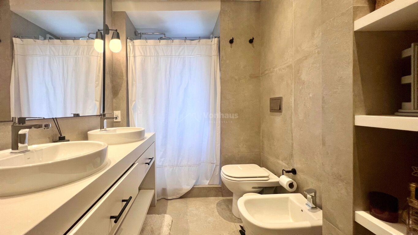 En el nivel superior, se encuentra un dormitorio principal con vestidor y baño privado, así como otro dormitorio con baño independiente. También hay dos dormitorios que comparten otro baño. Cabe destacar que esta planta alta fue renovada y modernizada en 2021.