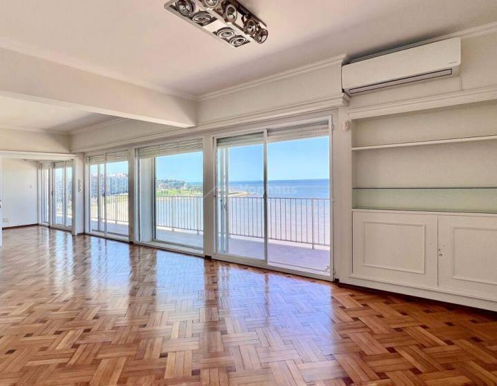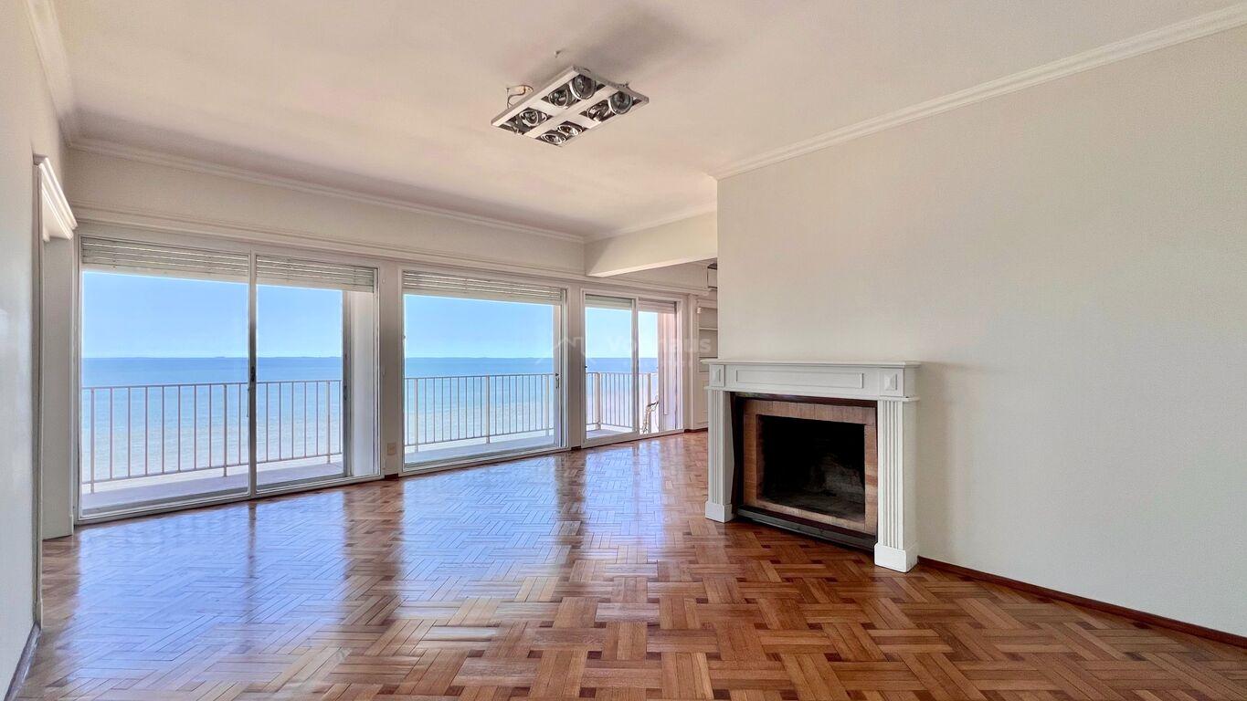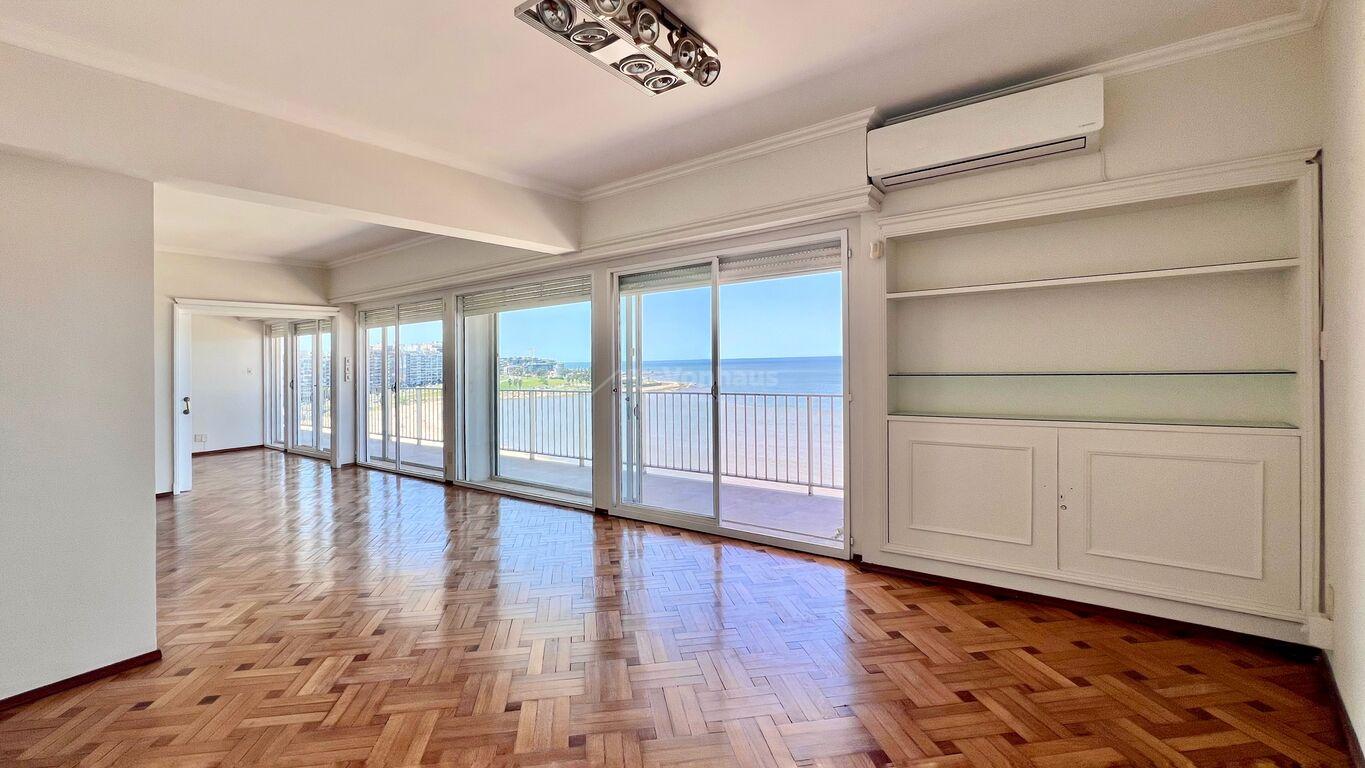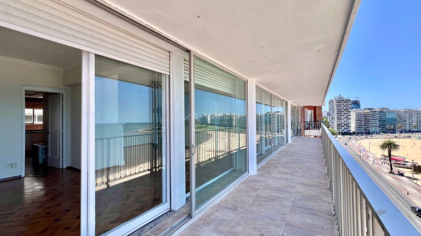 Apartamento de categoría sobre la Rbla. de Pocitos con vista única.Muy luminoso, con ventanales dobles de techo a piso en todo el largo del balcón de 16 m x 1,70 m.
