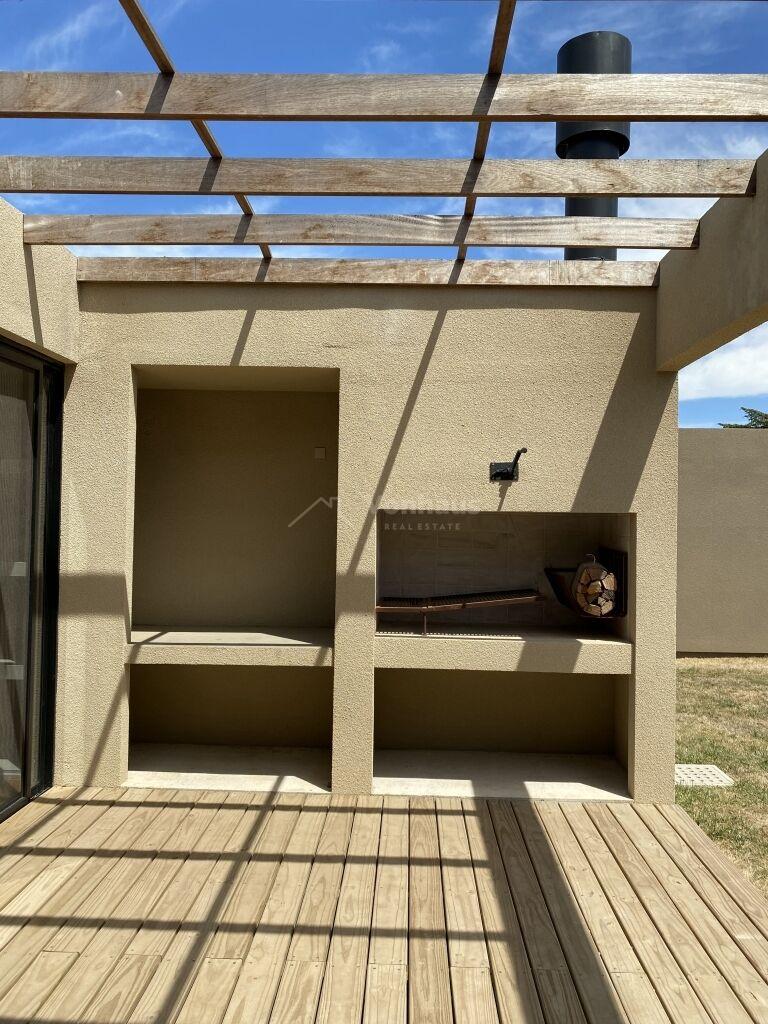 Casa desarrollada en 1 plantaHall de entrada, espacioso living-comedor con estufa a leña tradicional, que conecta a un gran deck con pérgola de madera y parrillero