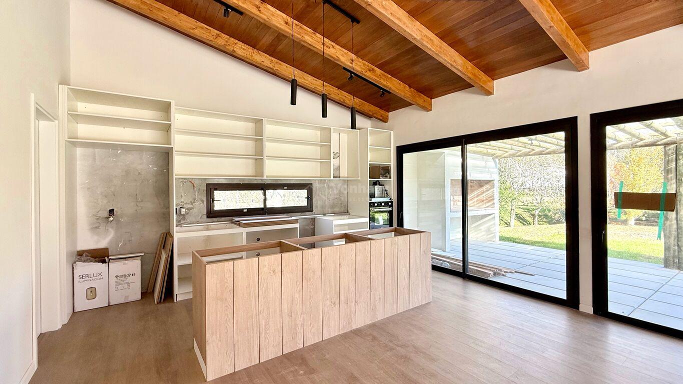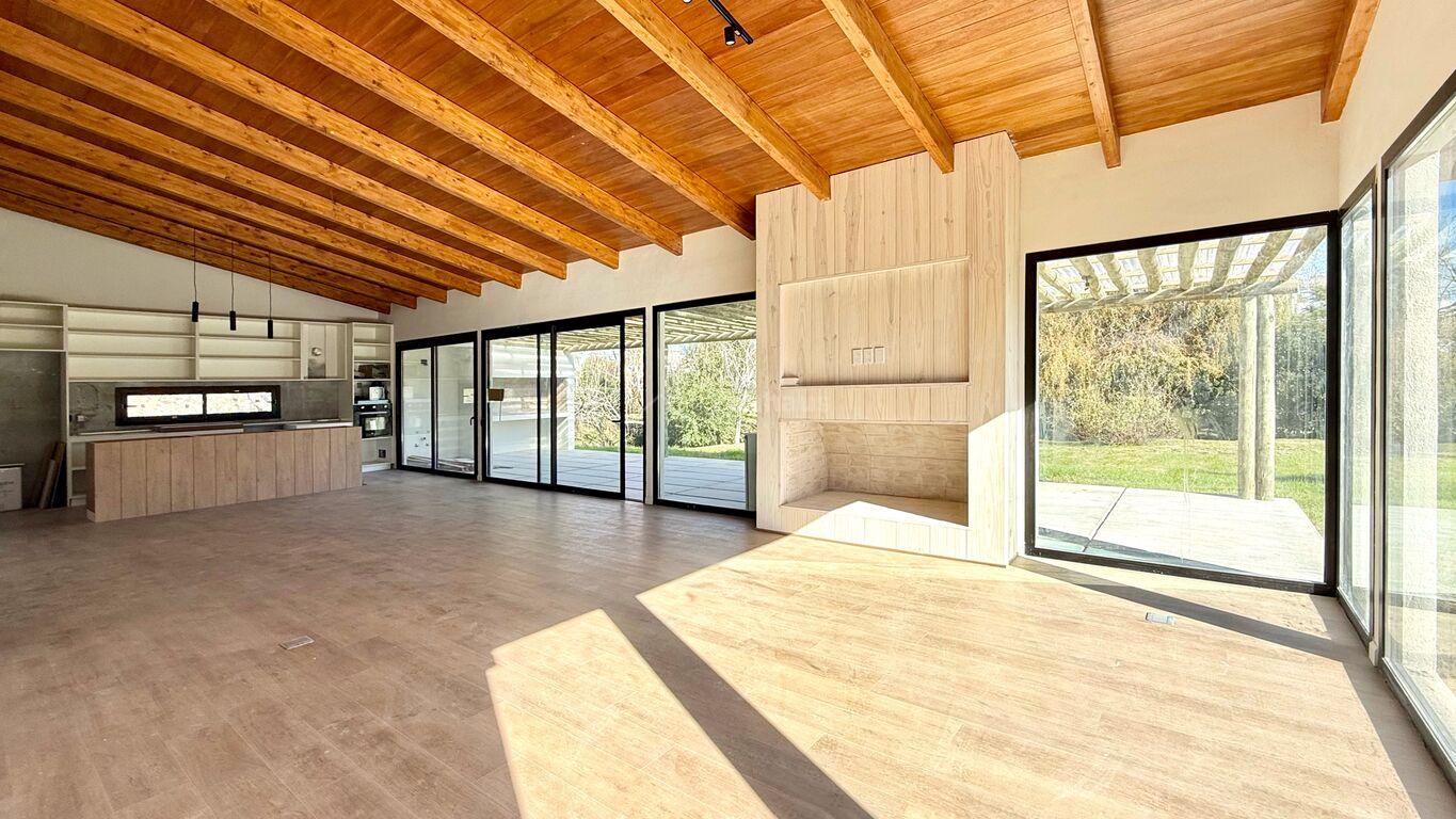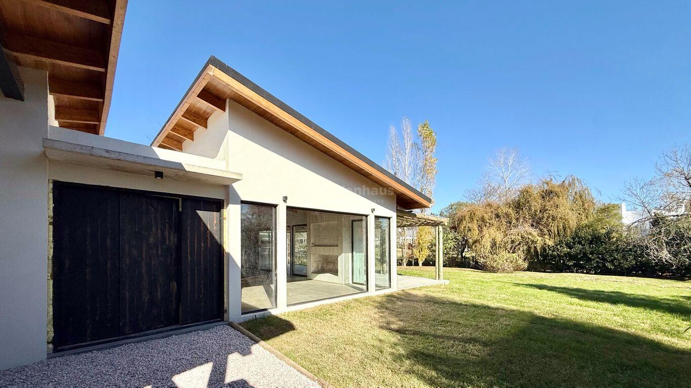 Casa en venta a estrenar en barrio privado Altos de la Tahona con ubicación privilegiada en una calle tranquila, con poco transito y cerca de la entrada.Desarrollada en 1 planta. Diseño de techos altos de madera, hall de entrada y toilette, living comedor con estufa tradicional integrado con cocina moderna con isla, y amplios ventanales. Lavadero con acceso a tender.