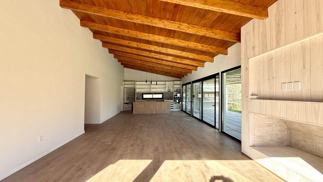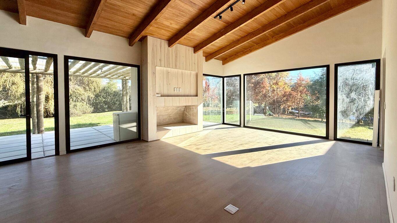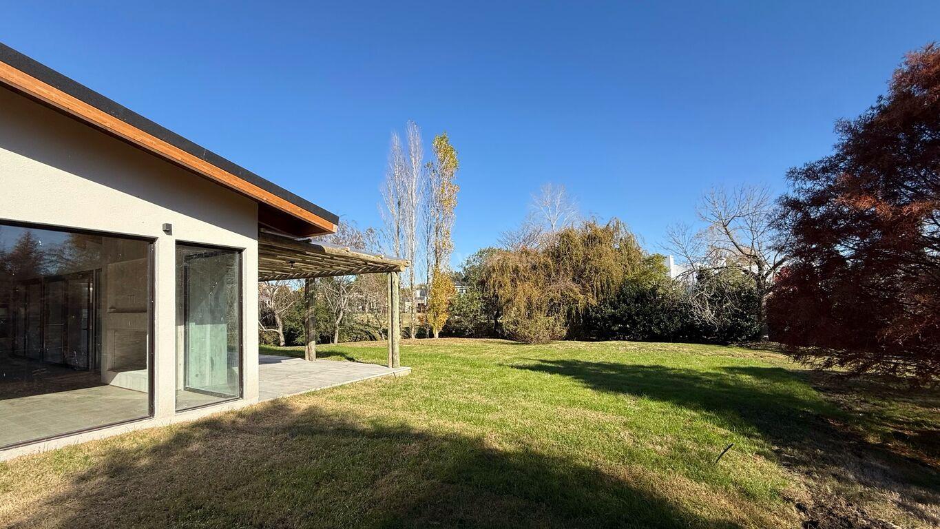 Casa en venta a estrenar en barrio privado Altos de la Tahona con ubicación privilegiada en una calle tranquila, con poco transito y cerca de la entrada.Desarrollada en 1 planta. Diseño de techos altos de madera, hall de entrada y toilette, living comedor con estufa tradicional integrado con cocina moderna con isla, y amplios ventanales. Lavadero con acceso a tender.