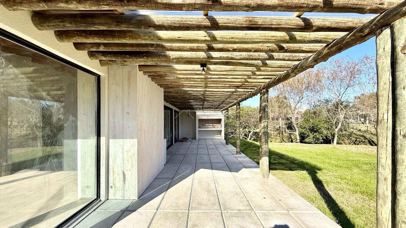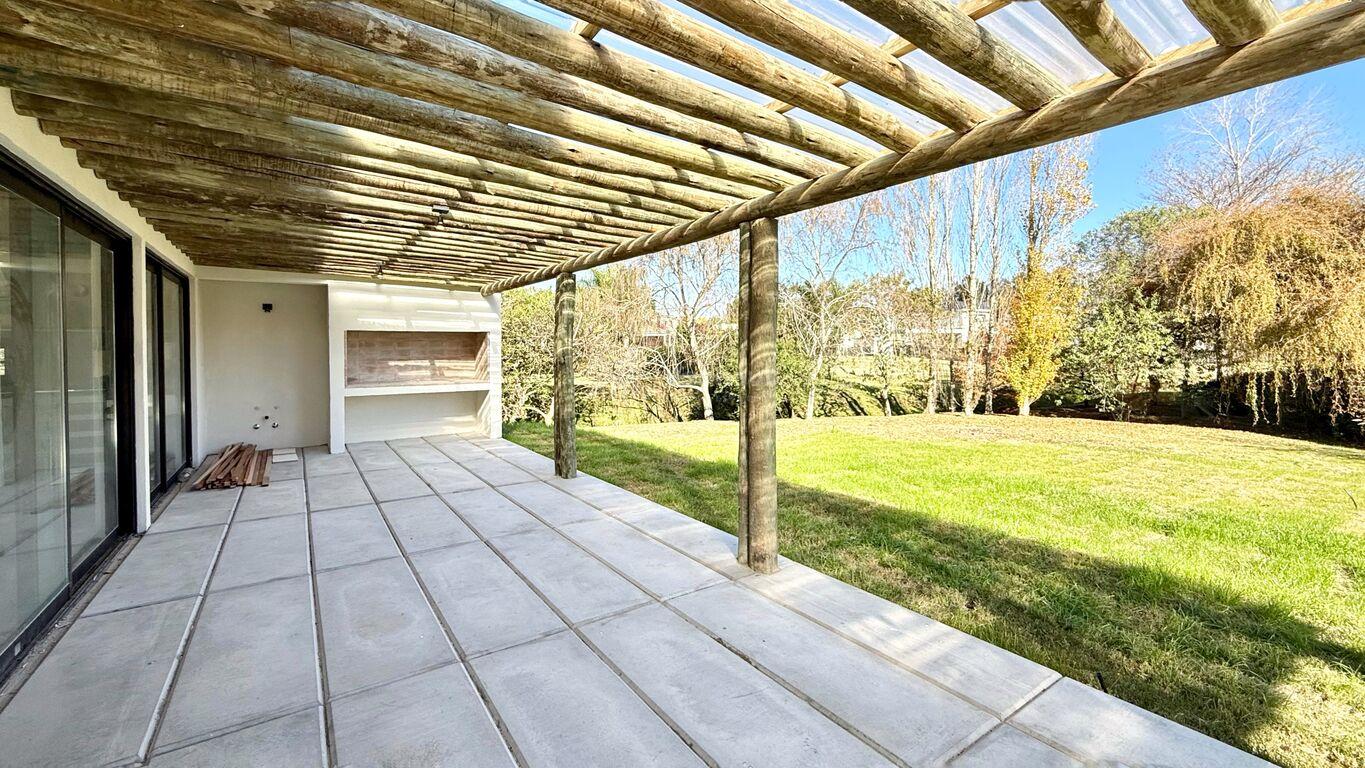 Pergola techada con parrillero y gran fondo orientado al noroeste con buenos arboles y vista despejada.