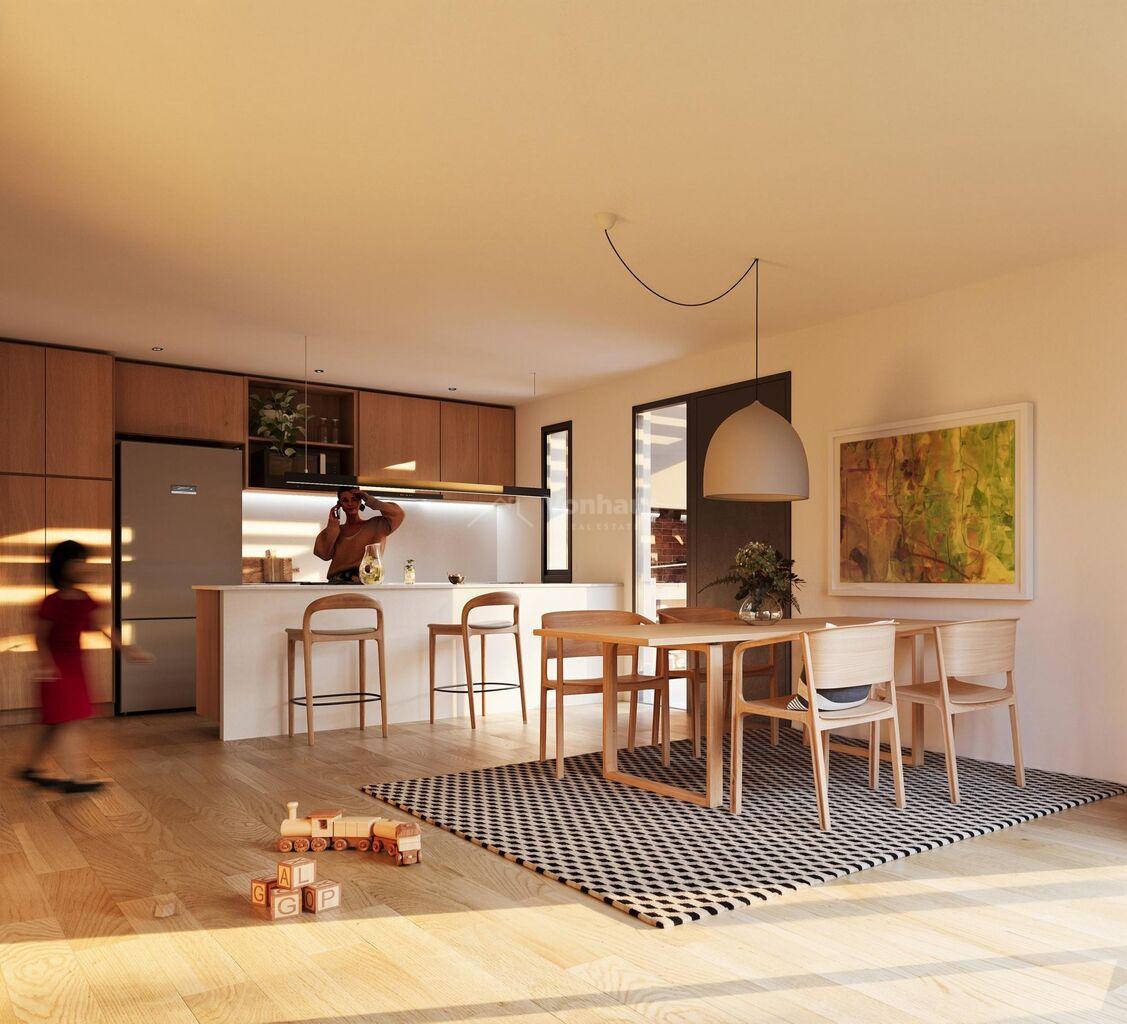 Cocina integrada equipada con horno, anafe y campana. Placares incluidos. Previsión para lavavajilla.