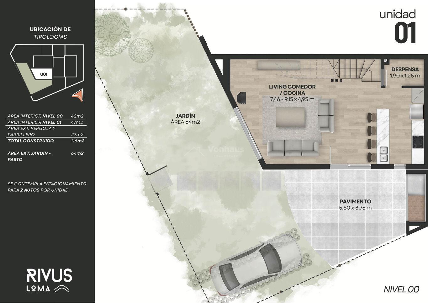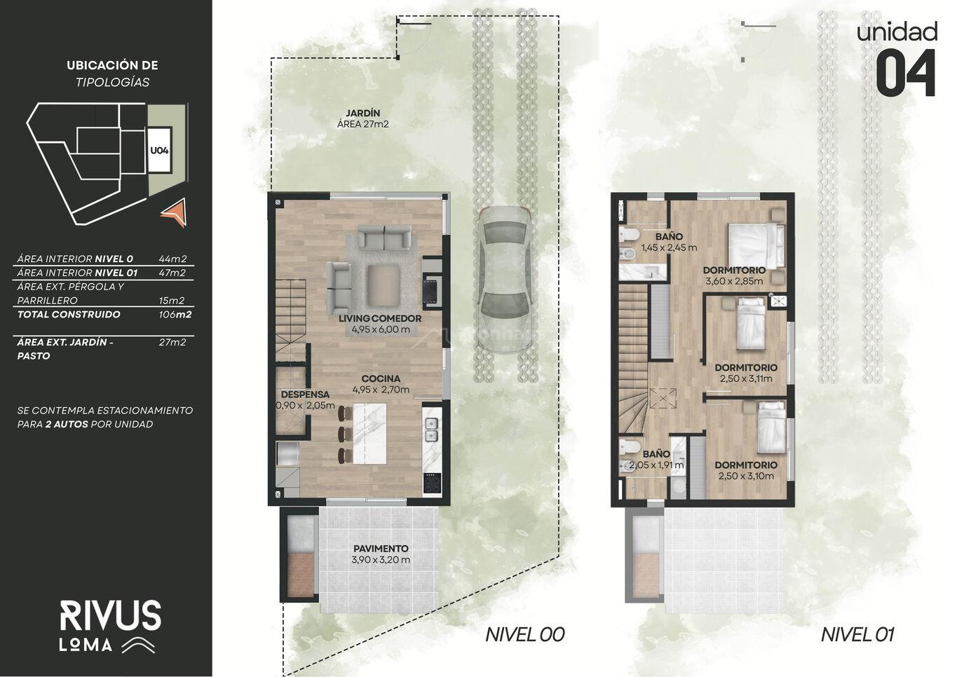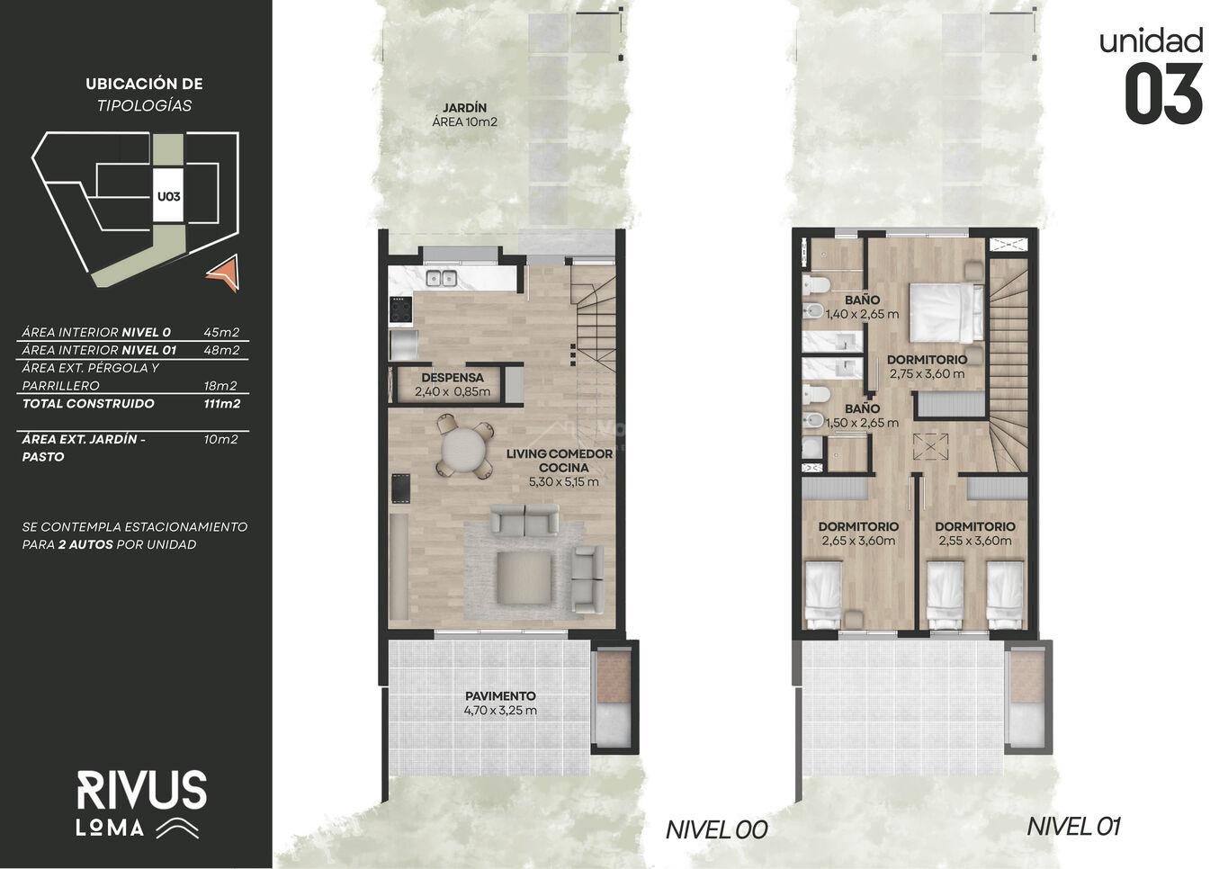 Precio Lanzamiento Rivus Loma, ubicado en Barra de Carrasco, con ubicacion estratégica entre Av. Gianatassio y Rambla.4 casas a estrenar desarrolladas en 2 plantas, de 3 dormitorios y 2 baños.