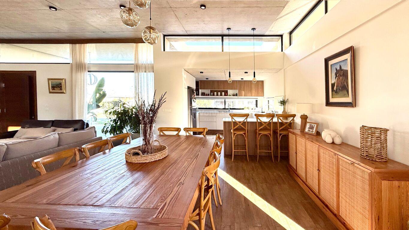 Desarrollada en 1 planta, de construccion tradicional. Comoda y funcional, muy luminosa.Amplio living comedor con estufa de alto rendimiento, cocina integrada muy comoda con barra y equipada con horno, anafe y campana.
