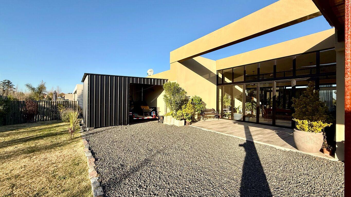 Jardin orientado al norte, espacio para varios autos en el lateral de la casa.