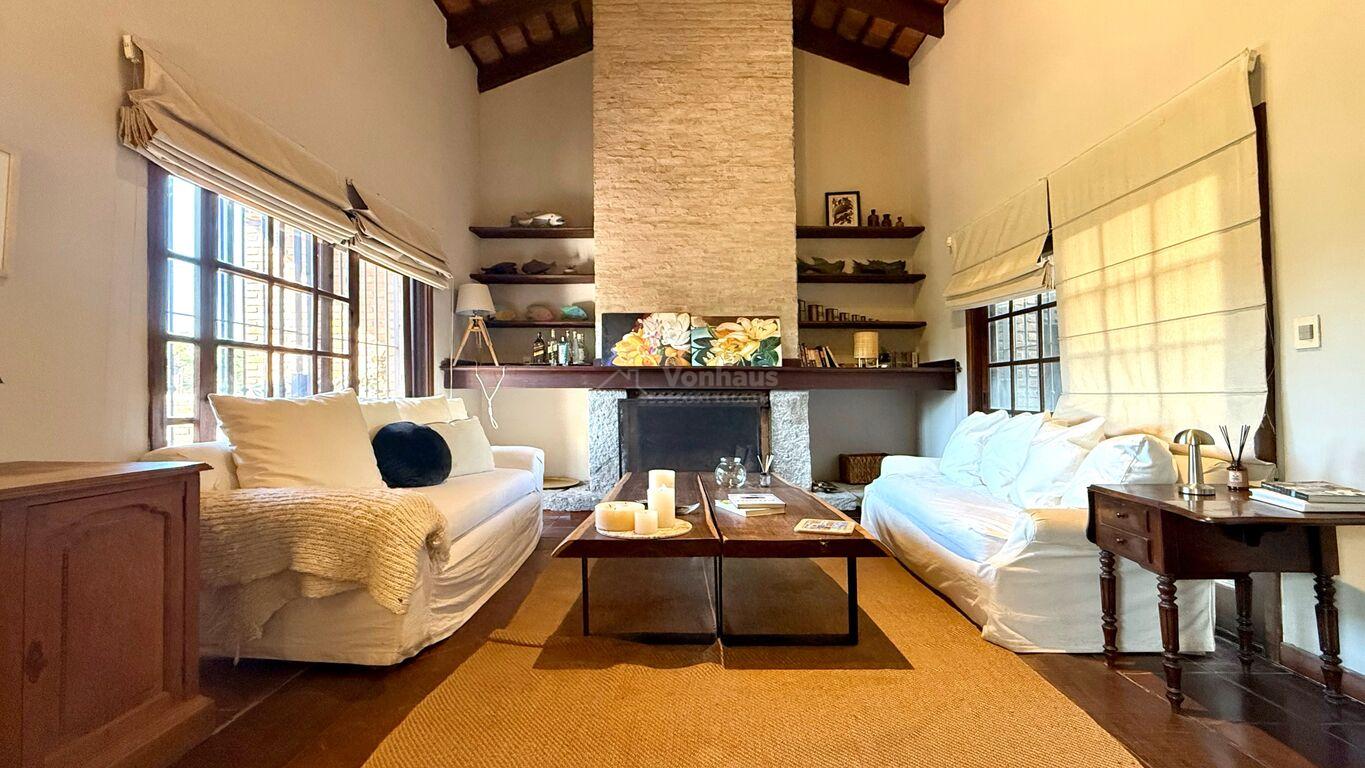 Planta principal en altura con hall de entrada, living comedor y segundo living con estufa a leña, estar diario con estufa a leña, toilette y cocina definida, amplia con office. Lavadero y servicio completo.