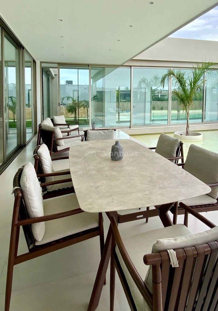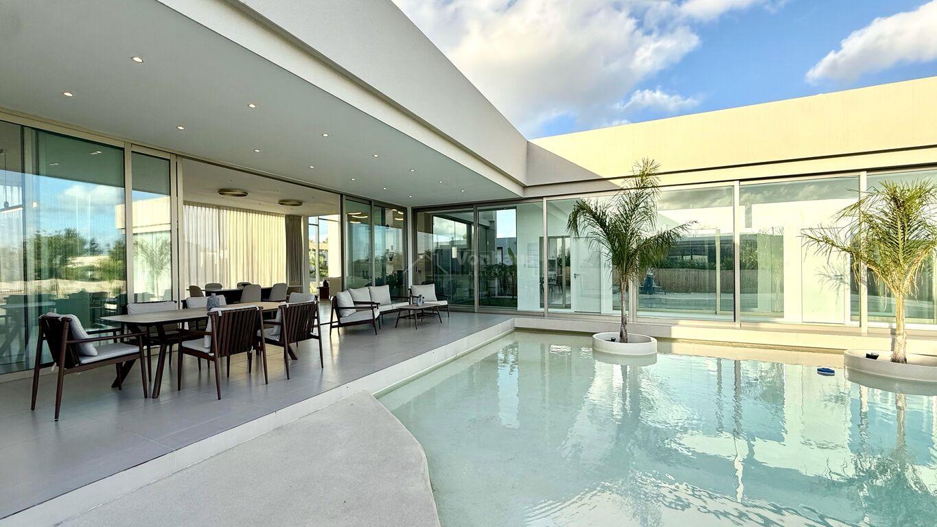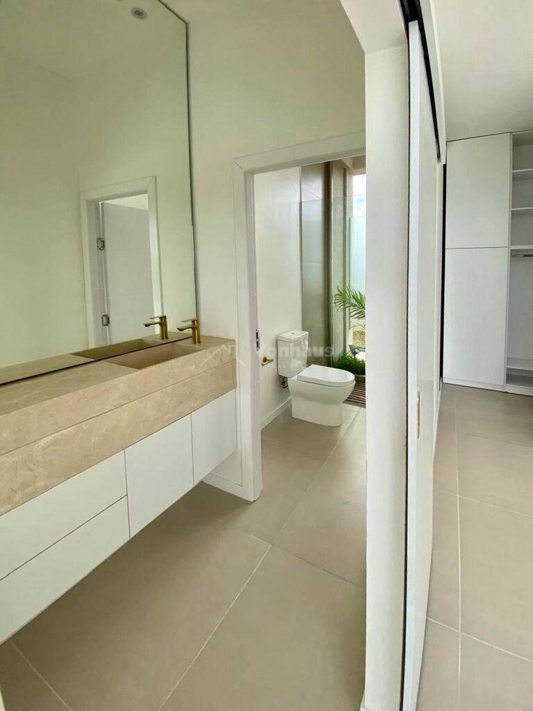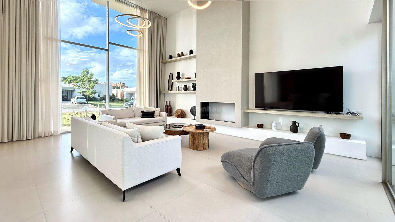El área íntima tiene tres dormitorios en suite y el dormitorio principal con vestidor., pérgola techada con parrillero y jardín con piscina climatizada y diseño de paisajismo realizado.